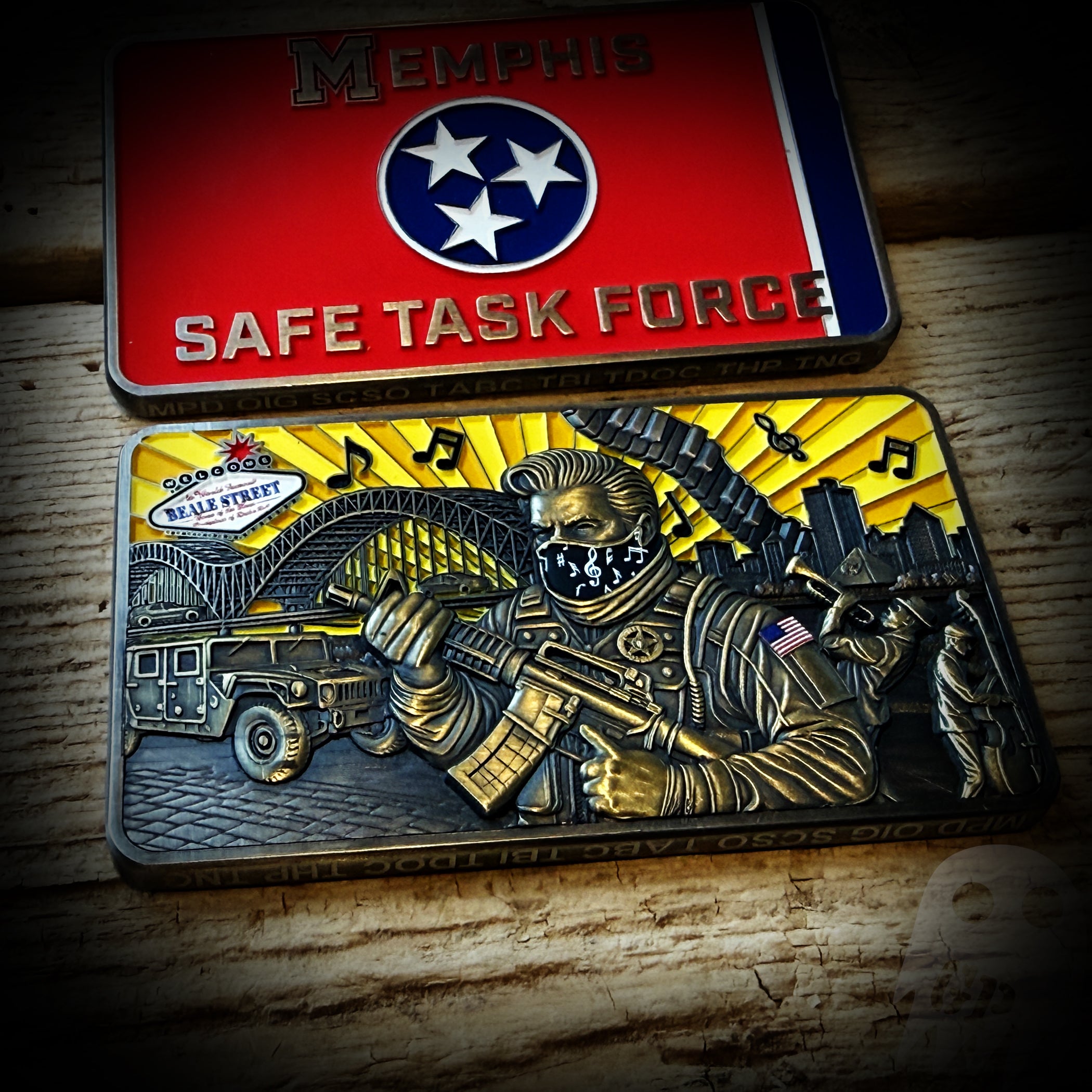 The official US Marshal Service Memphis, TN Safe Task Force coin. All agencies involved are laser inscribed on the edge of the coin.