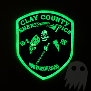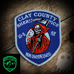 Authentic and authorized - Clay County FL Sheriff's Office 10-8 shift patch. A true Ghost Patch original. GLOW IN THE DARK.