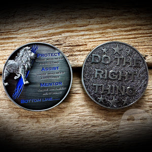 A great everyday carry reminder coin for all officers. From rookies to veterans, we always need that little reminder that we are here to help the good people of society. Protect, Assist, and Mentor. Just do the right thing.