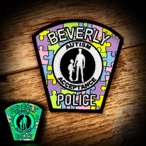 Beverly, Massachusetts Police Department Autism Patch - Authentic. Proceeds will be donated to the Doug Flutie Jr. Foundation. Glows in the dark!