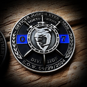 This coin was produced to assist the members of the Charlotte Mecklenburg PD. Officer Joshua Eyer was murdered on April 29th 2024. Officer Eyer has a wife and a young son. This is a fundraiser coin.