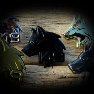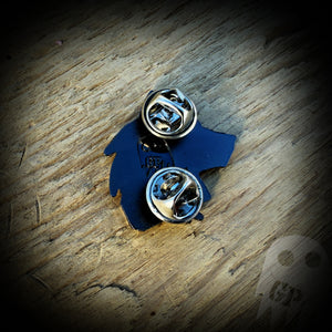 This is a 1.15" solid metal pin available in shiny silver, shiny gold, subdued silver, subdued gold, and black.