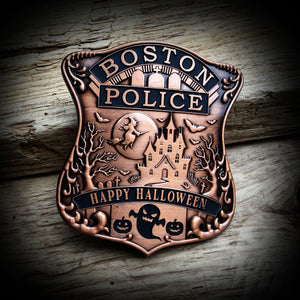 Boston, Massachusetts Police Department commemorative metal Halloween badge.