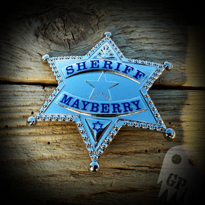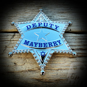 The replica badge of Sheriff Andy Taylor of the Mayberry Sheriff's Office. You get both the Sheriff and the Deputy badge.