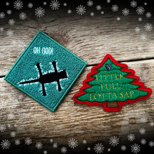 Both are 100% embroidered patch with iron on backing. Cat is 3", tree is 4".