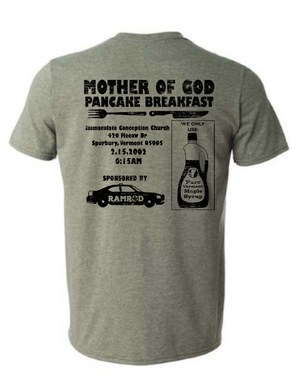 The official shirt of the 2002 Vermont Highway Patrol Spurbury Barracks Mother of God Pancake Breakfast. Shirts are green Gildan Softstyle Tee 65% Polyester / 35% cotton. Please see sizing in photos for tshirt sizing.