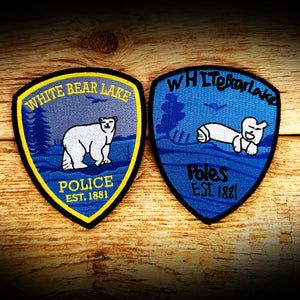This is a DOUBLE SIDED White Bear Lake, GP Police Department April Fools Patch. One side is the real deal with Boomer and the backside has been drawn by one of our children.